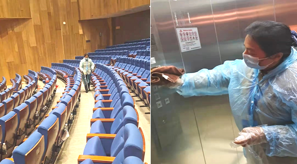 按市疾控中心消殺防疫工作要求,認真開展疫情防控工作。一是認真開展體溫監測,每日為員工監測體溫并做好登記,發現體溫異常及時上報;二是按疫情防控要求認真開展消殺工作,每日會前、會后對會議桌桌面、座椅扶手、過道、電梯、客房等區域進行消殺,做好消殺記錄,現場拍照并按時上報疾控中心;三是防疫物質儲備到位到點,在會場門口、餐廳、房間等區域放置口罩、消毒濕紙巾、消毒凝膠等防疫物質,安排專人主動為代表們提供防疫物質服務。